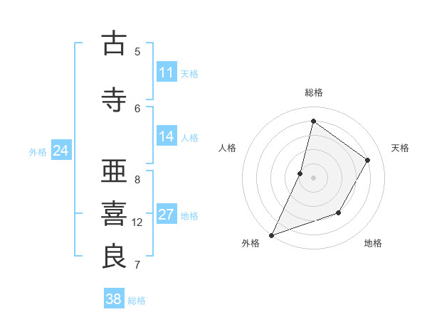 古寺 亜喜良さんの総格は38画の4点!