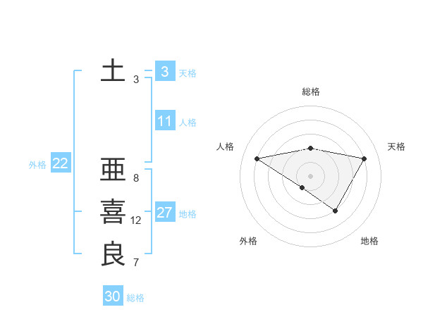 土 亜喜良さんを姓名の画数から五運を鑑定