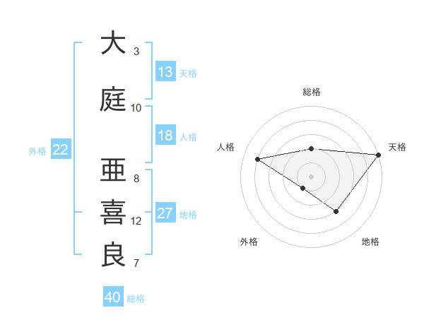 大庭 亜喜良さんの天格は13画の5点!