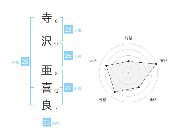 寺沢 亜喜良さんの総格は50画の2点!