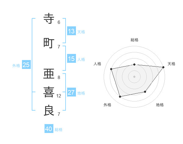 寺町 亜喜良さんを姓名の画数から五運を鑑定