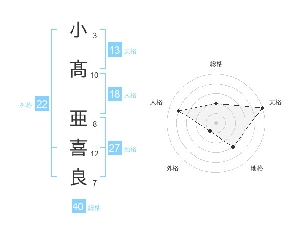 小髙 亜喜良さんの天格は13画の5点!
