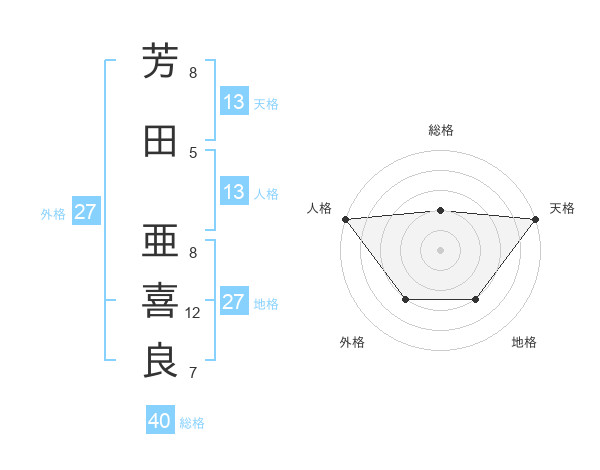 芳田 亜喜良さんを姓名の画数から五運を鑑定