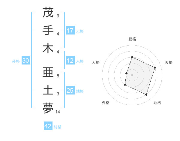 茂手木 亜土夢さんを姓名の画数から五運を鑑定