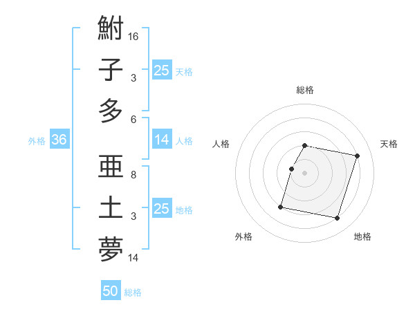 鮒子多 亜土夢さんを姓名の画数から五運を鑑定