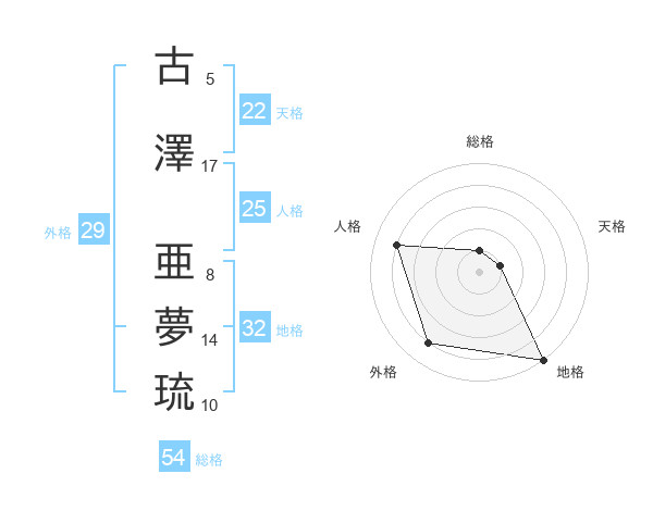 古澤 亜夢琉さんの天格は22画の1点!