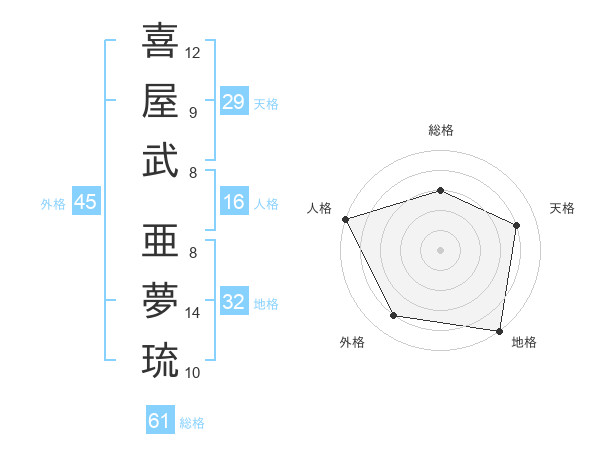 喜屋武 亜夢琉さんの外格は45画の4点!