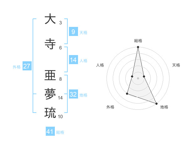 大寺 亜夢琉さんの総格は41画の5点!