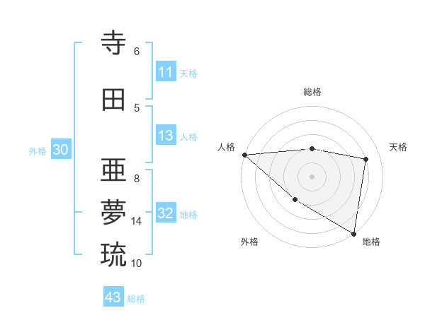寺田 亜夢琉さんを姓名の画数から五運を鑑定