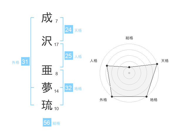 成沢 亜夢琉さんの天格は24画の5点!