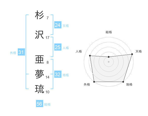 杉沢 亜夢琉さんを姓名の画数から五運を鑑定