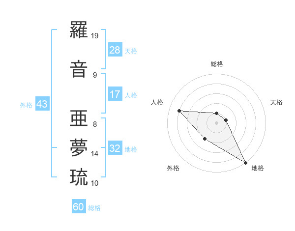 羅音 亜夢琉さんの地格は32画の5点!