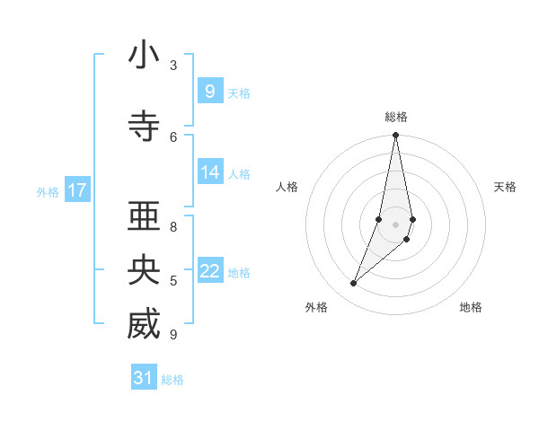小寺 亜央威さんを姓名の画数から五運を鑑定