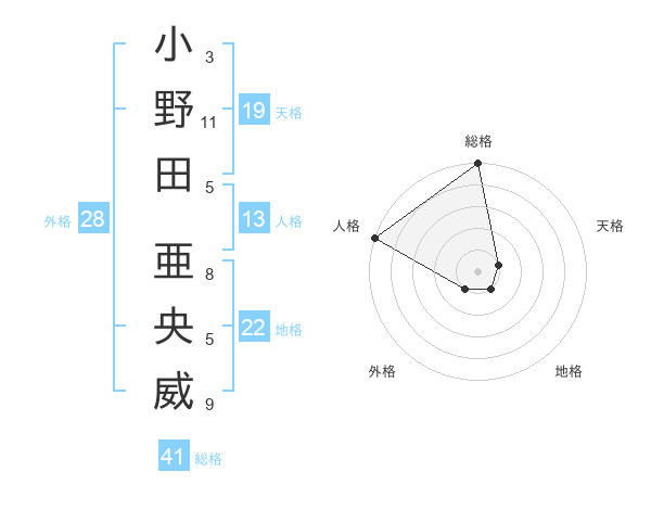 小野田 亜央威さんを姓名の画数から五運を鑑定