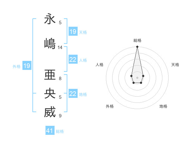 永嶋 亜央威さんの総格は41画の5点!