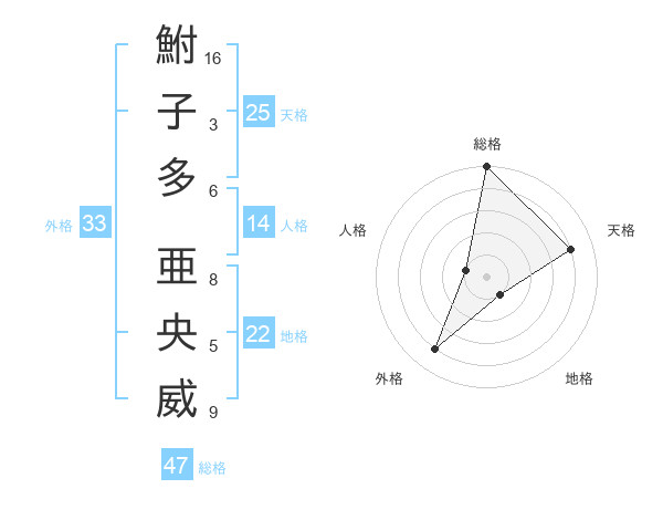 鮒子多 亜央威さんを姓名の画数から五運を鑑定