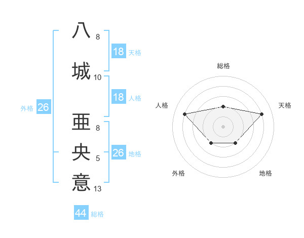 八城 亜央意さんを姓名の画数から五運を鑑定