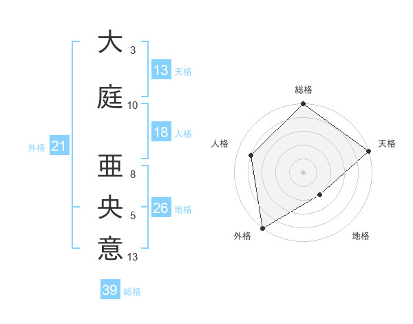 大庭 亜央意さんの総格は39画の5点!