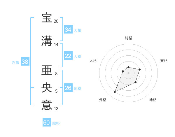 宝溝 亜央意さんの外格は38画の4点!