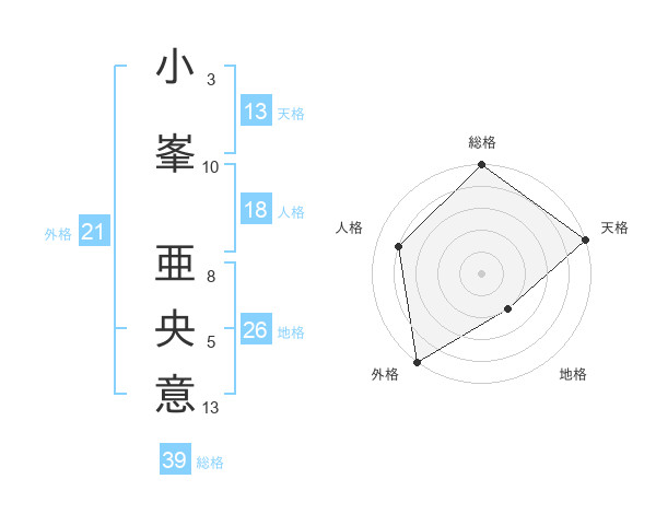 小峯 亜央意さんを姓名の画数から五運を鑑定