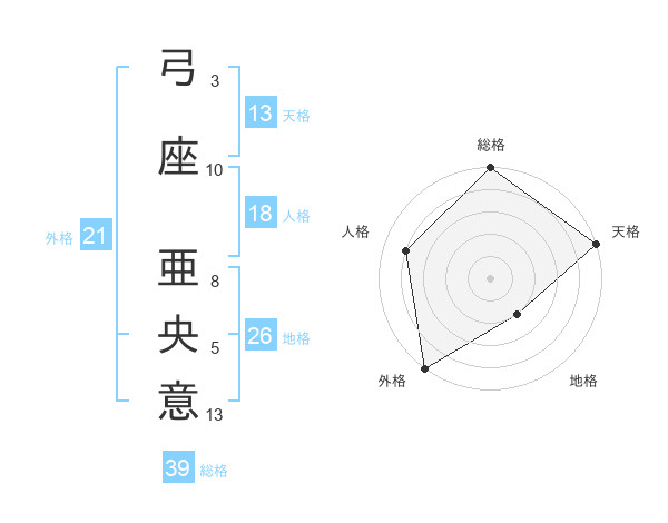 弓座 亜央意さんを姓名の画数から五運を鑑定