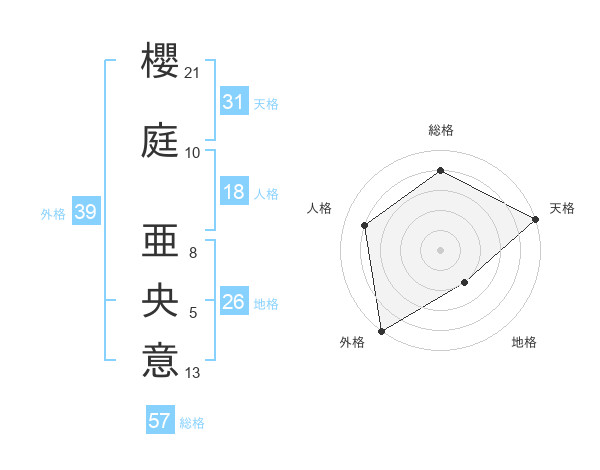 櫻庭 亜央意さんの総格は57画の4点!