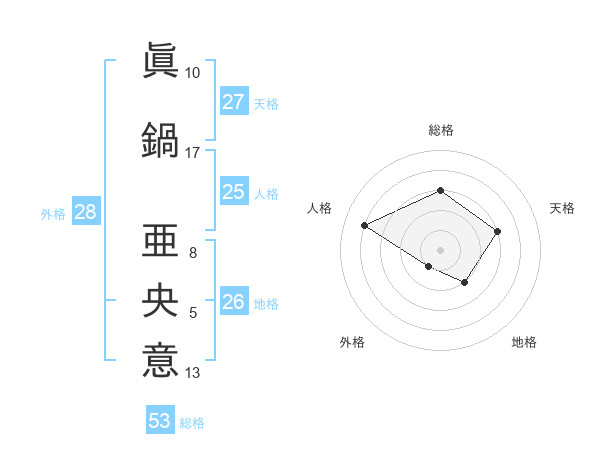 眞鍋 亜央意さんの総格は53画の3点!