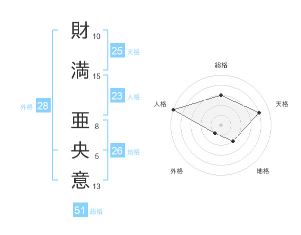 財満 亜央意さんを姓名の画数から五運を鑑定