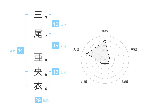 三尾 亜央衣さんを姓名の画数から五運を鑑定