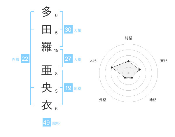 多田羅 亜央衣さんを姓名の画数から五運を鑑定