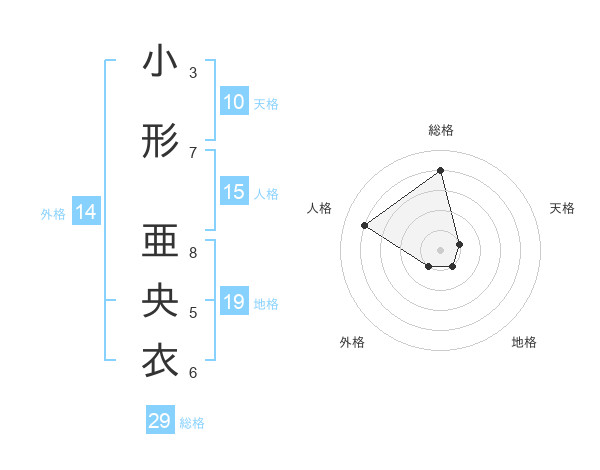 小形 亜央衣さんの総格は29画の4点