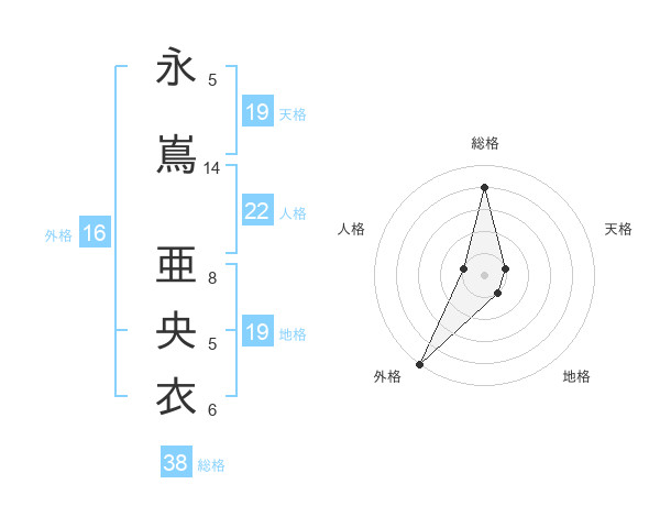 永嶌 亜央衣さんの総格は38画の4点!