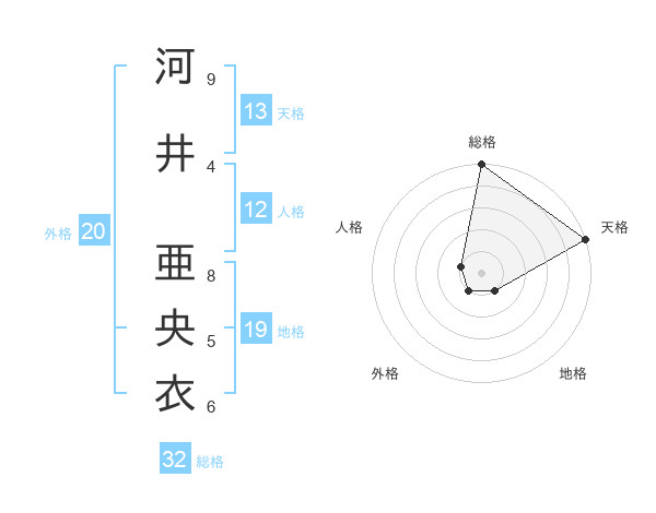 河井 亜央衣さんを姓名の画数から五運を鑑定