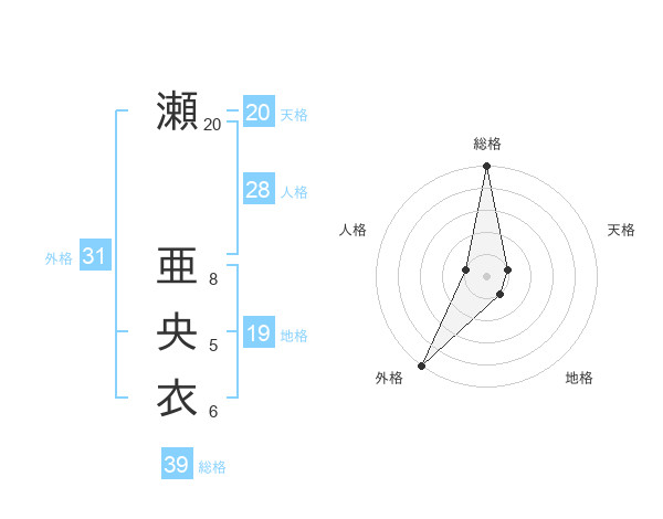 瀬 亜央衣さんを姓名の画数から五運を鑑定