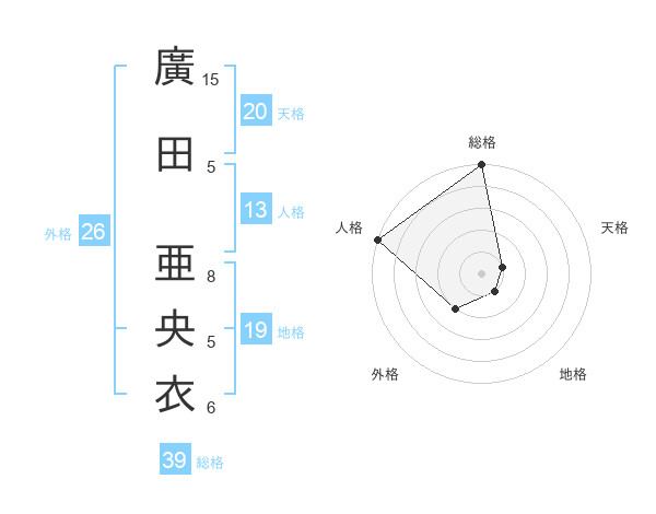 廣田 亜央衣さんを姓名の画数から五運を鑑定