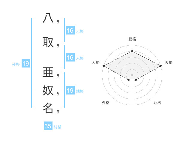 八取 亜奴名さんを姓名の画数から五運を鑑定