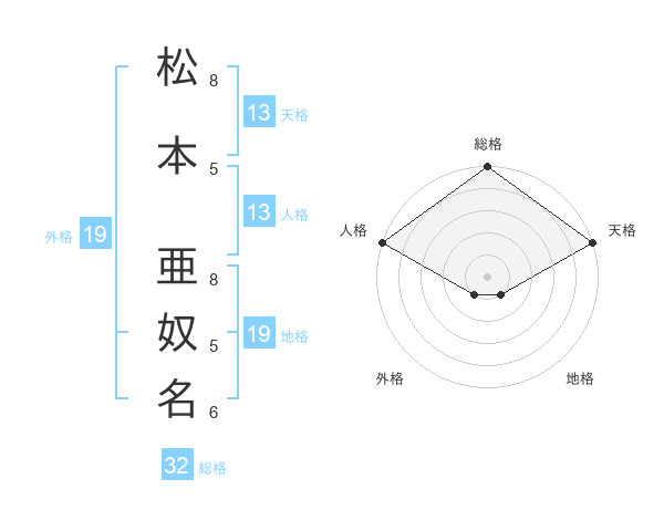 松本 亜奴名さんを姓名の画数から五運を鑑定