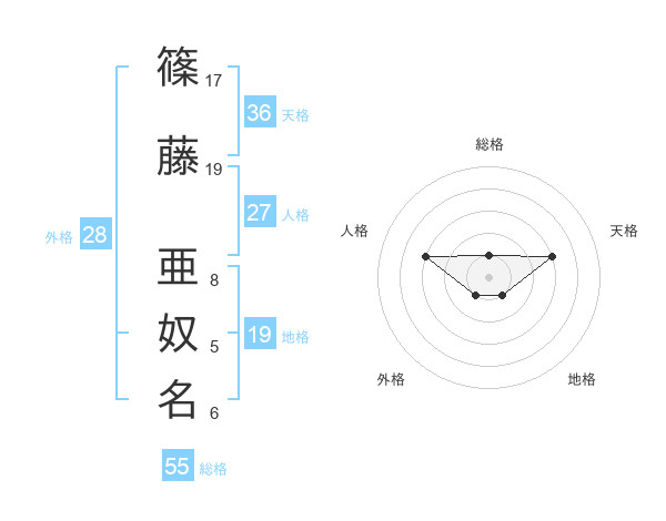 篠藤 亜奴名さんの天格は36画の3点!
