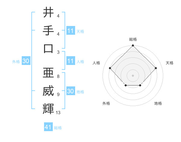 井手口 亜威輝さんを姓名の画数から五運を鑑定