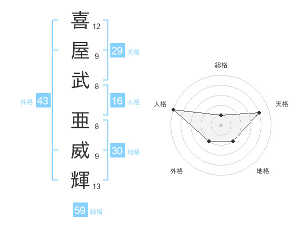 喜屋武 亜威輝さんを姓名の画数から五運を鑑定