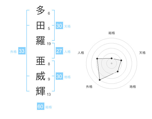 多田羅 亜威輝さんを姓名の画数から五運を鑑定