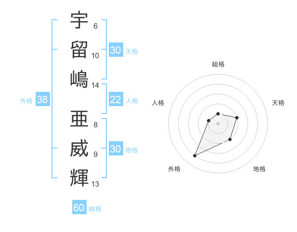 宇留嶋 亜威輝さんの総格は60画の1点!