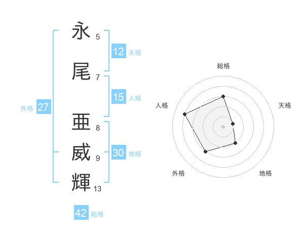 永尾 亜威輝さんの総格は42画の3点!