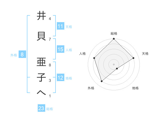 井貝 亜子へさんを姓名の画数から五運を鑑定