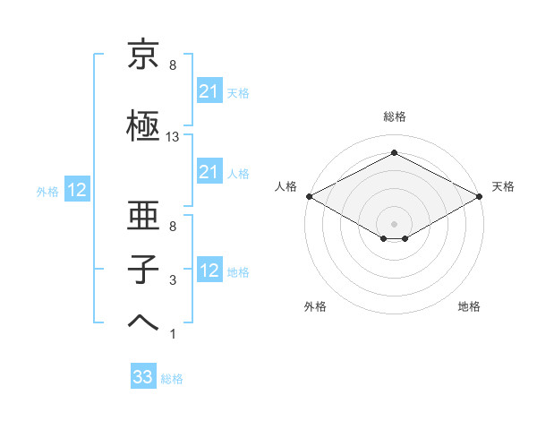 京極 亜子へさんの天格は21画の5点!