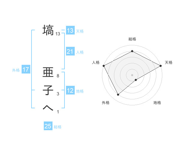 塙 亜子へさんの人格は21画の5点!