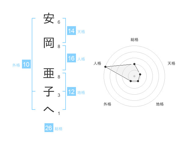 安岡 亜子へさんを姓名の画数から五運を鑑定