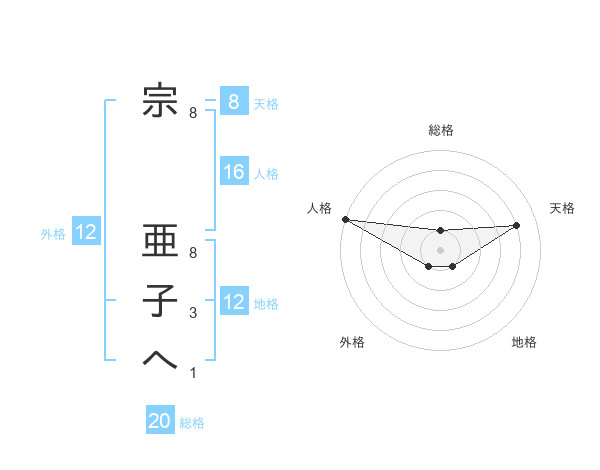 宗 亜子へさんを姓名の画数から五運を鑑定