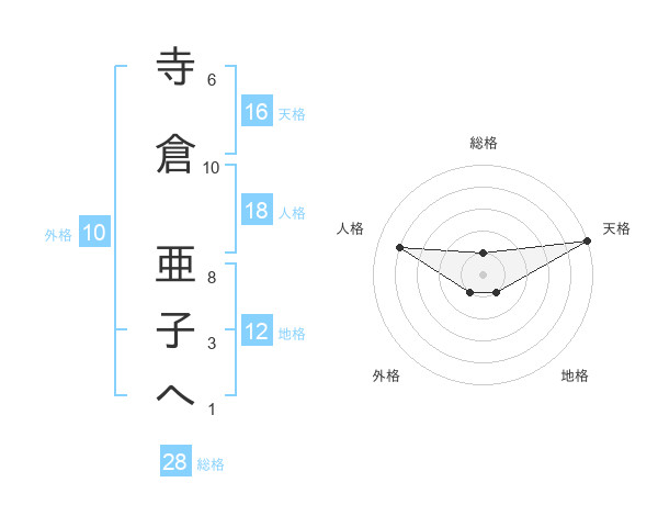 寺倉 亜子へさんの天格は16画の5点!