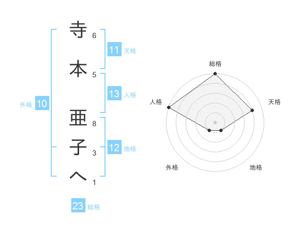 寺本 亜子へさんの総格は23画の5点!